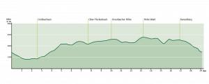 Über sehr ausgeglichene Auf- und Abstiege geht es weiter bis nach Oberflockenbach. Mit etwas Ausdauer führt die Tour von dort aus über den Judenberg zur Schriesheimer Hütte, die zum Einkehren einlädt. Nachdem man nun den letzten anstrengenden Anstieg bewältigt hat, führen abwechslungsreiche Trails über die Burgruine Schanzenköpfle und den Kanzelberg wieder nach Leutershausen.